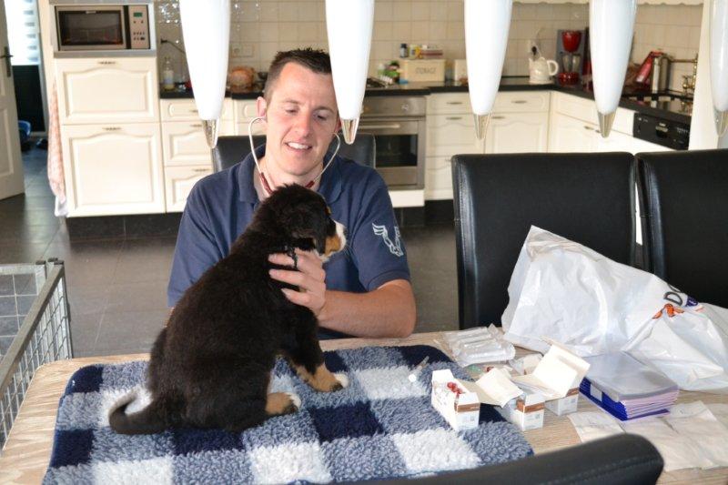 De dierenarts heeft vandaag de medische controles uitgevoerd, de paspoortjes afgeleverd en alle pupjes de eerste entingen van 6 weken gegeven.