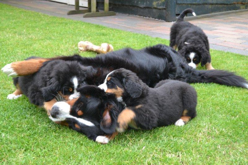Vandaag gaat Joris als laatste pupje naar zijn nieuwe baasjes. Het wordt weer stil in huis.... alle pupjes hebben weer fantastische baasjes gekregen en daar zijn wij zo trots op. Met een lach en een traan nemen we afscheid van ons 4de nestje. We wensen alle baasjes heel veel geluk met hun lieve Berner Sennen pupje!