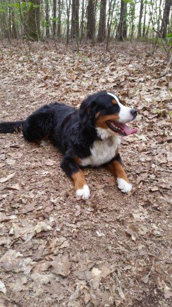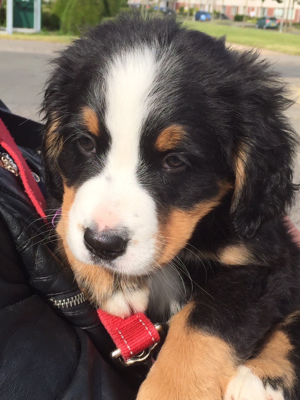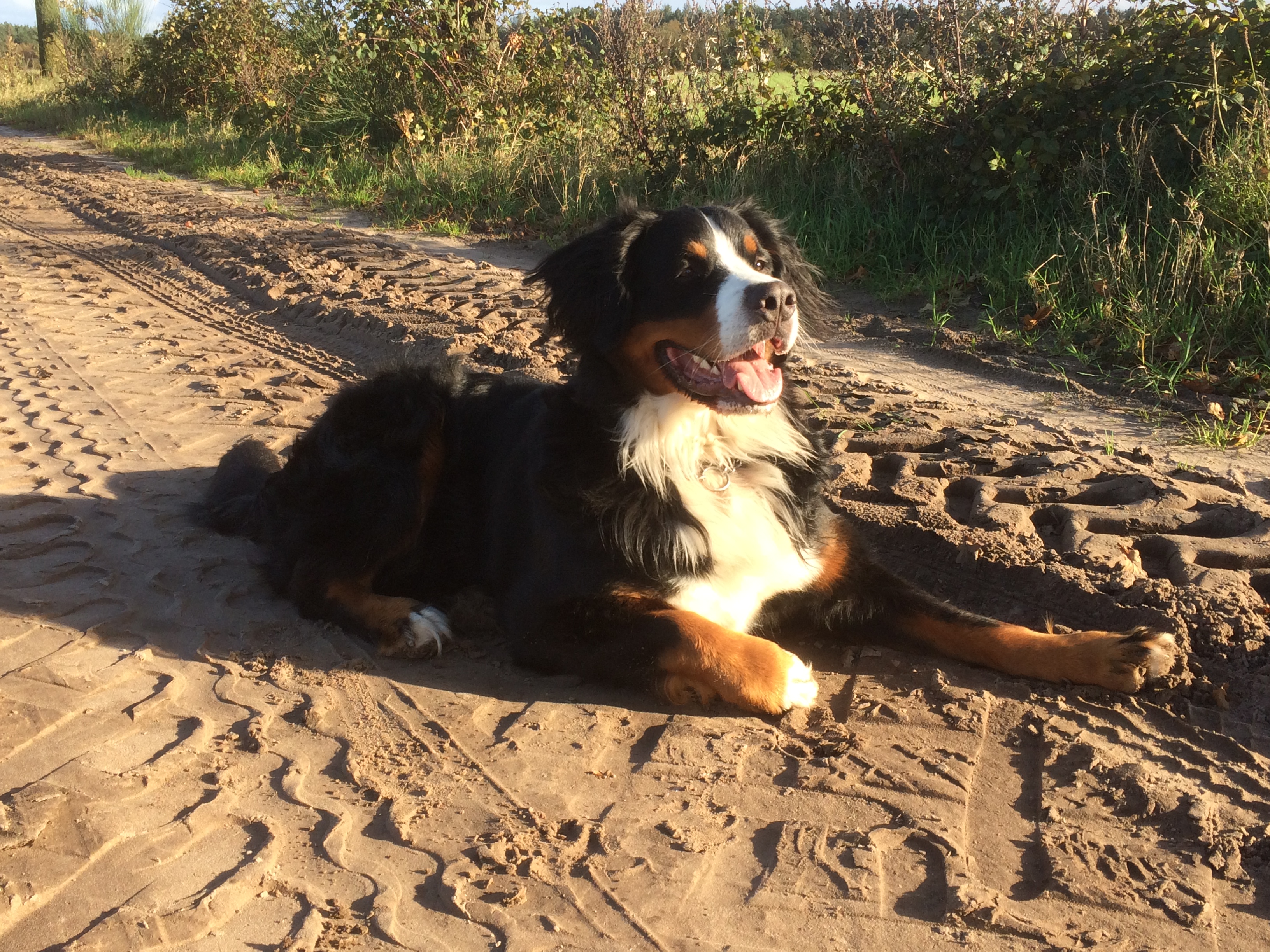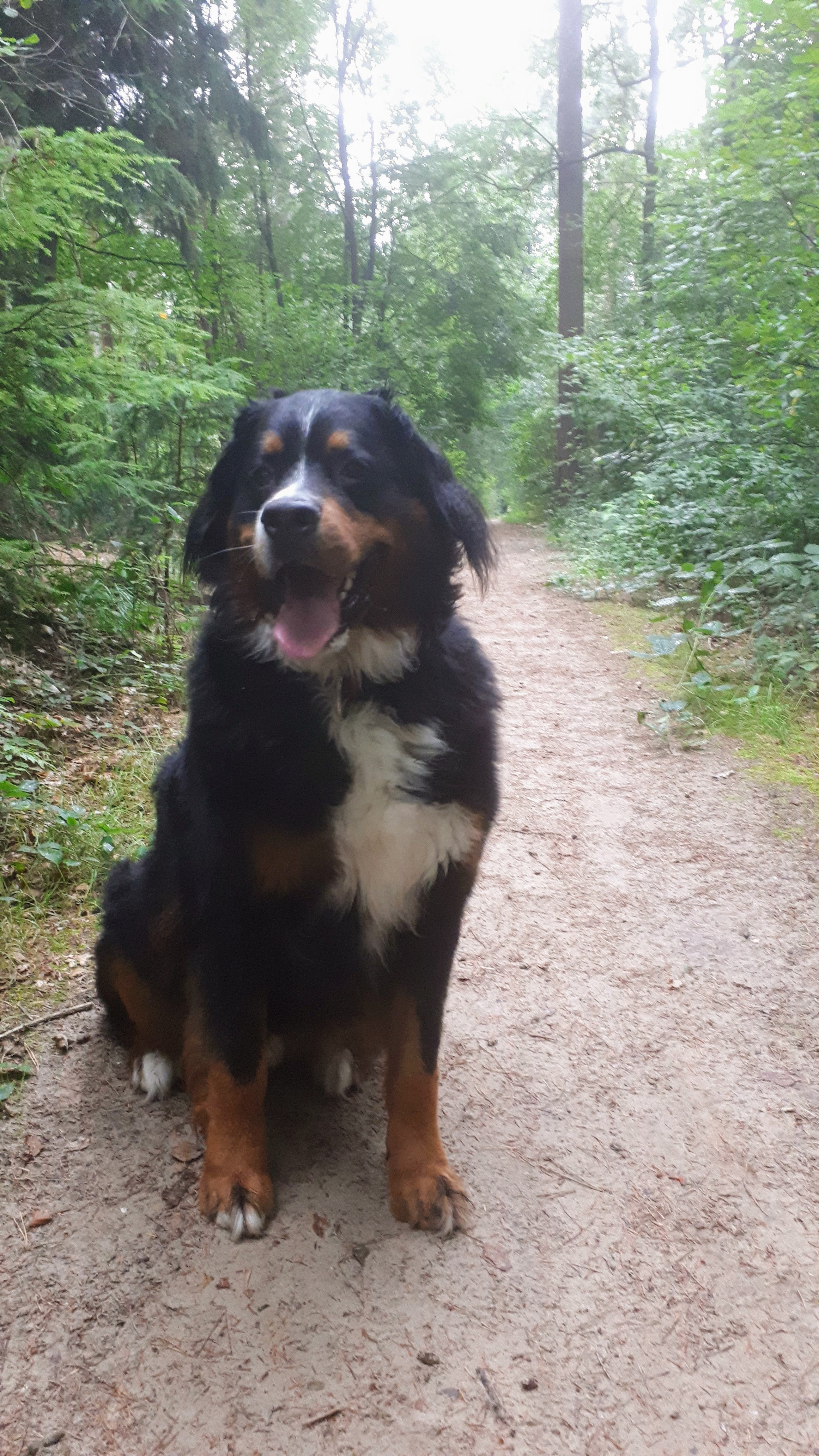 Pebbles: Pebbles is nog steeds een vrolijke, levendige hond, iedere dag lopen we de polder door samen met Puk, onze andere berner. Nu in de corona tijd lopen we toch iedere x verdere rondjes, echt lekker met dat mooie weer,