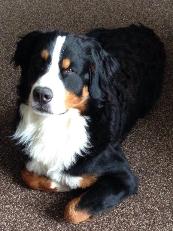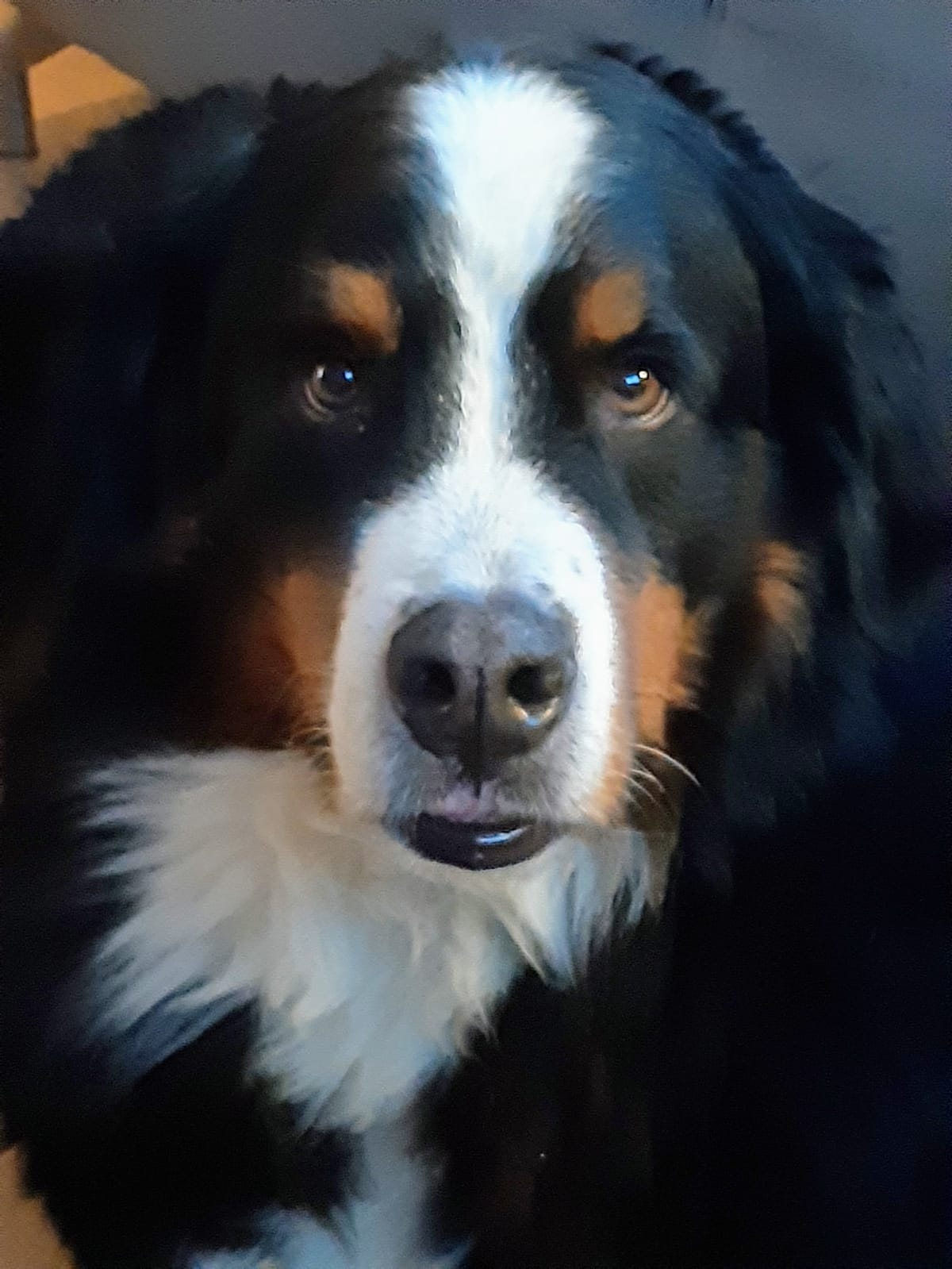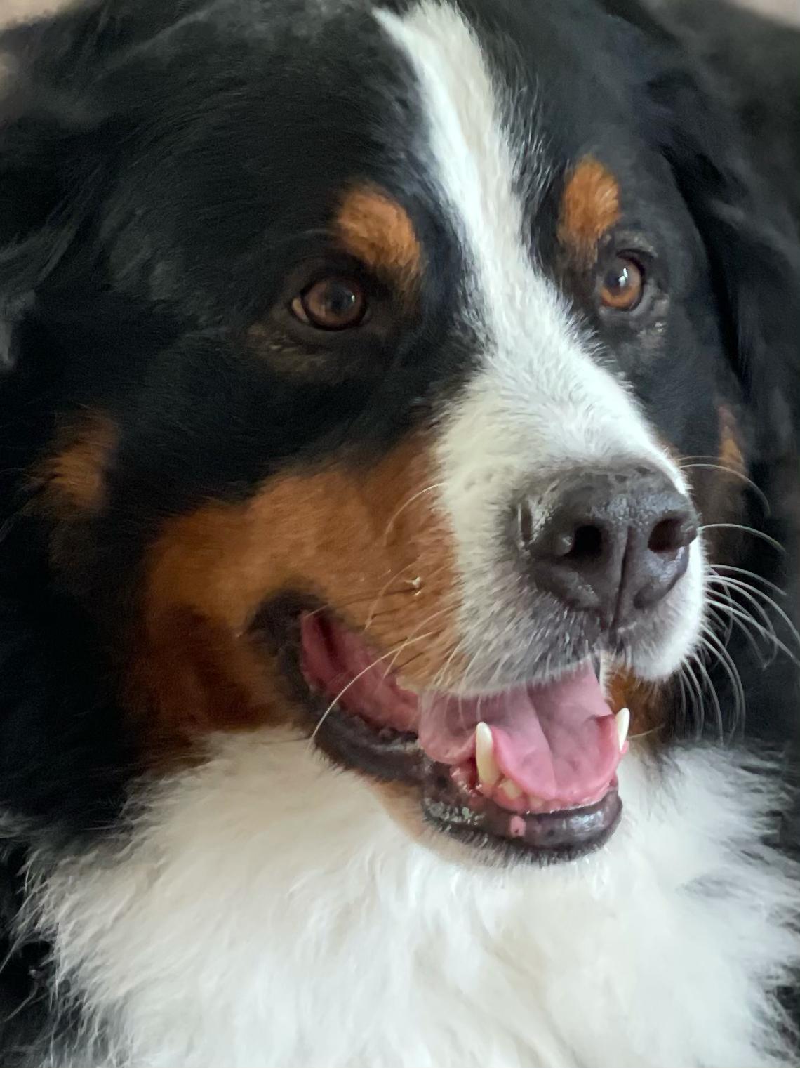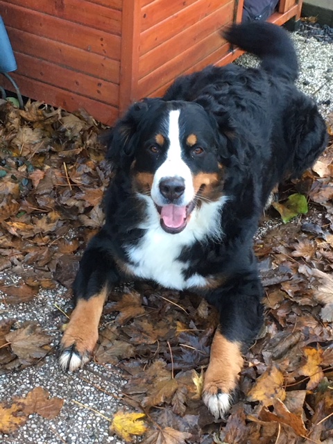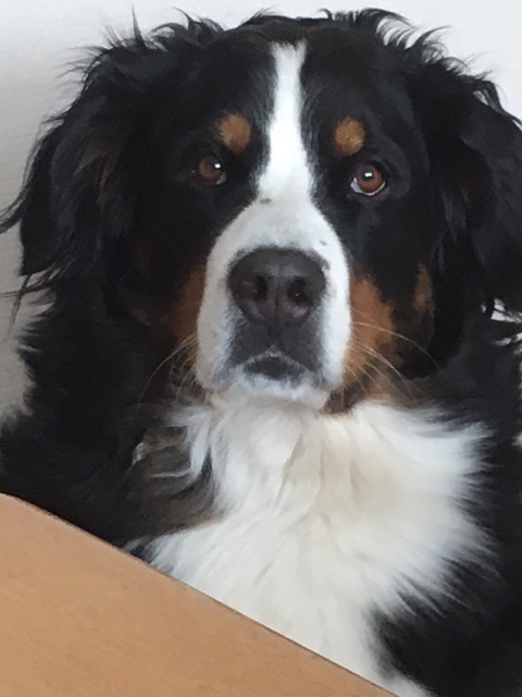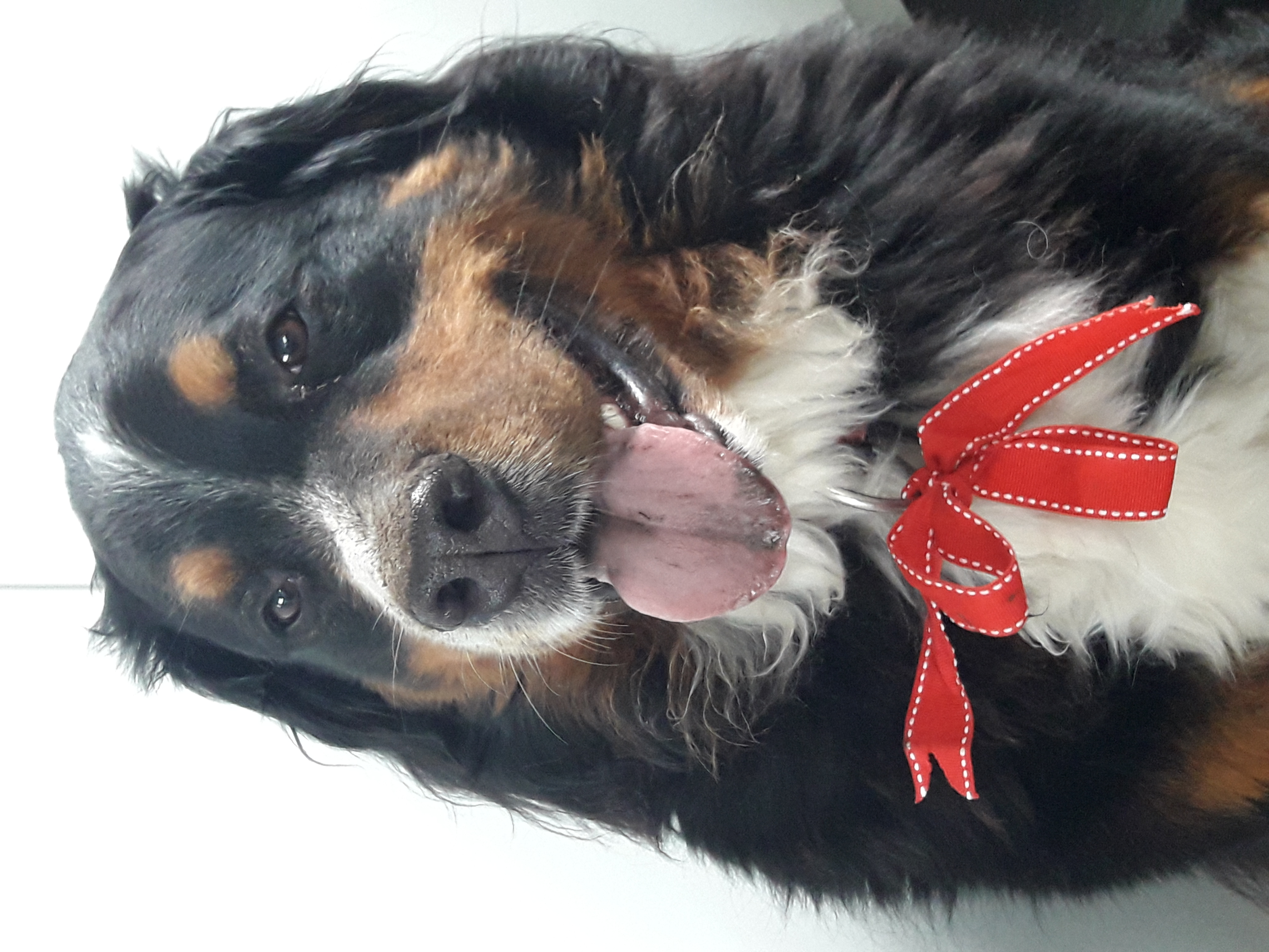 Onze " Loetje" een Berner met een grote rode clownsneus, waar we zielsveel van houden.