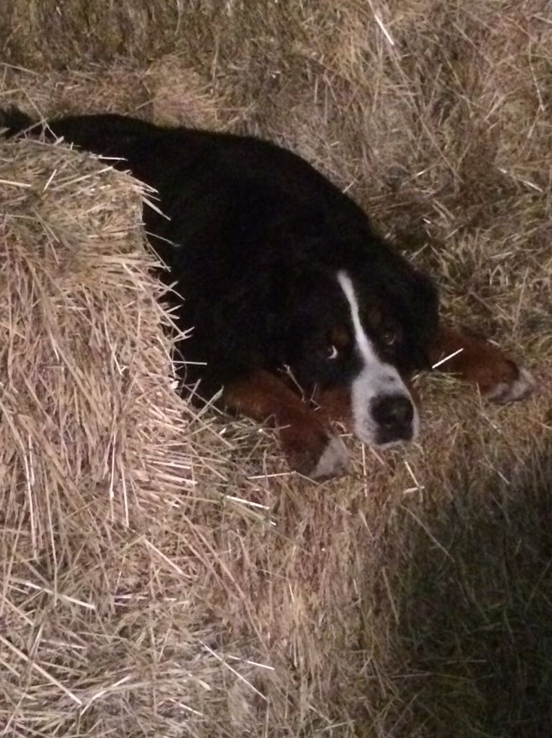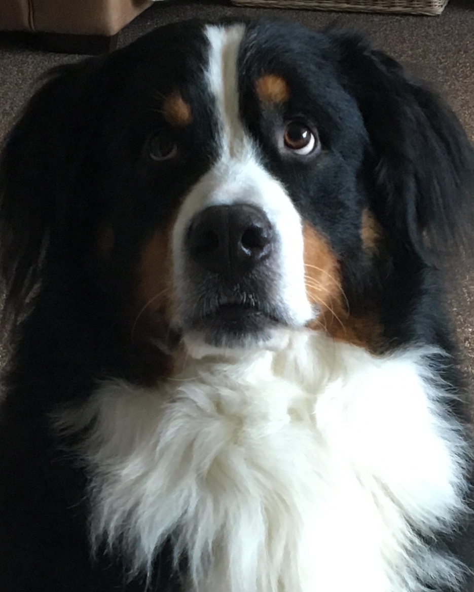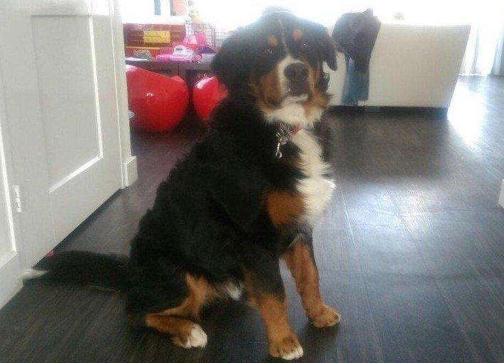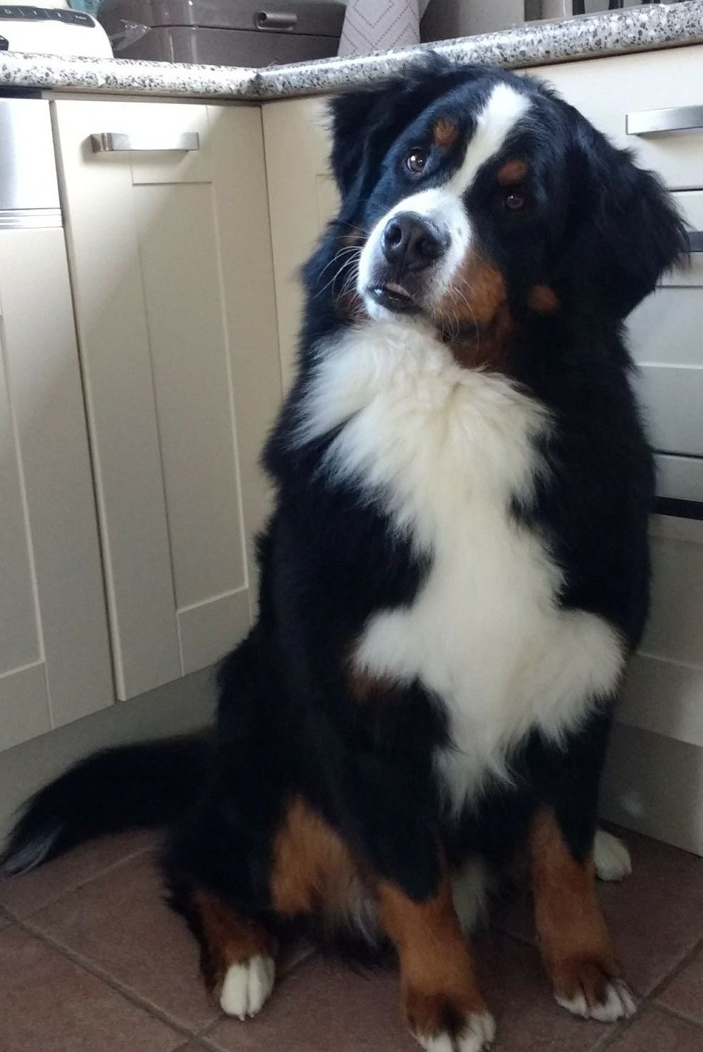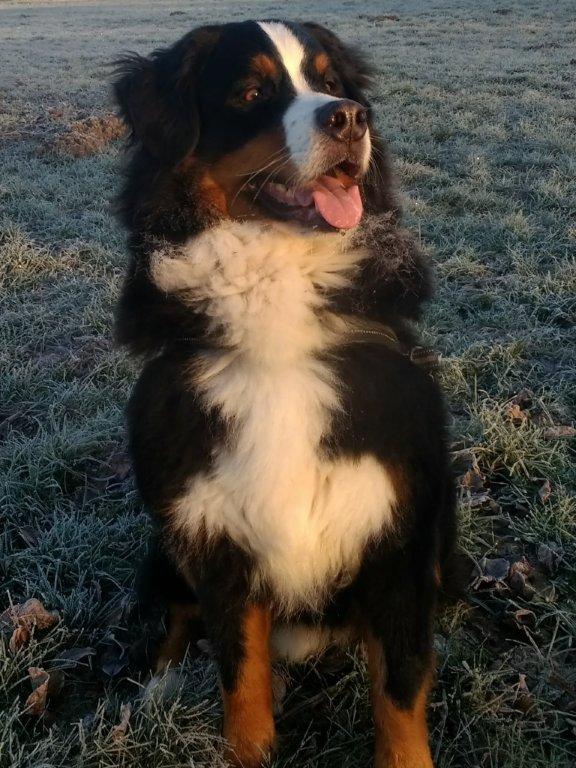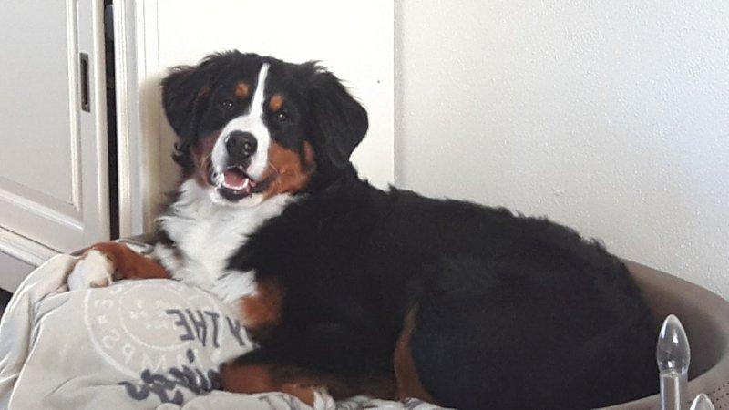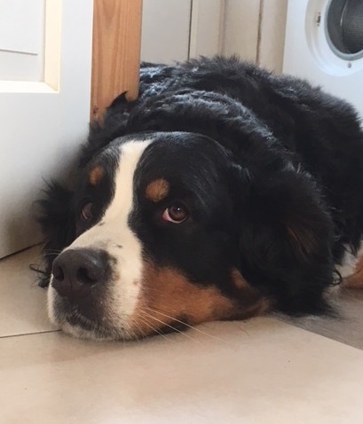 Onze " Loetje" een Berner met een grote rode clownsneus, waar we zielsveel van houden.