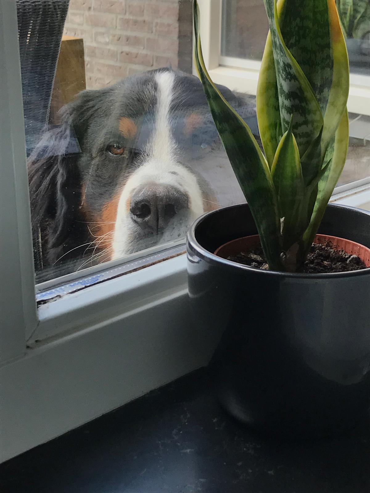 maakt. Zo schattig. Hij is het liefst de hele dag buiten. Alles houdt hij in de gaten. Pas na de