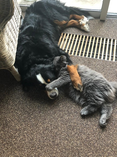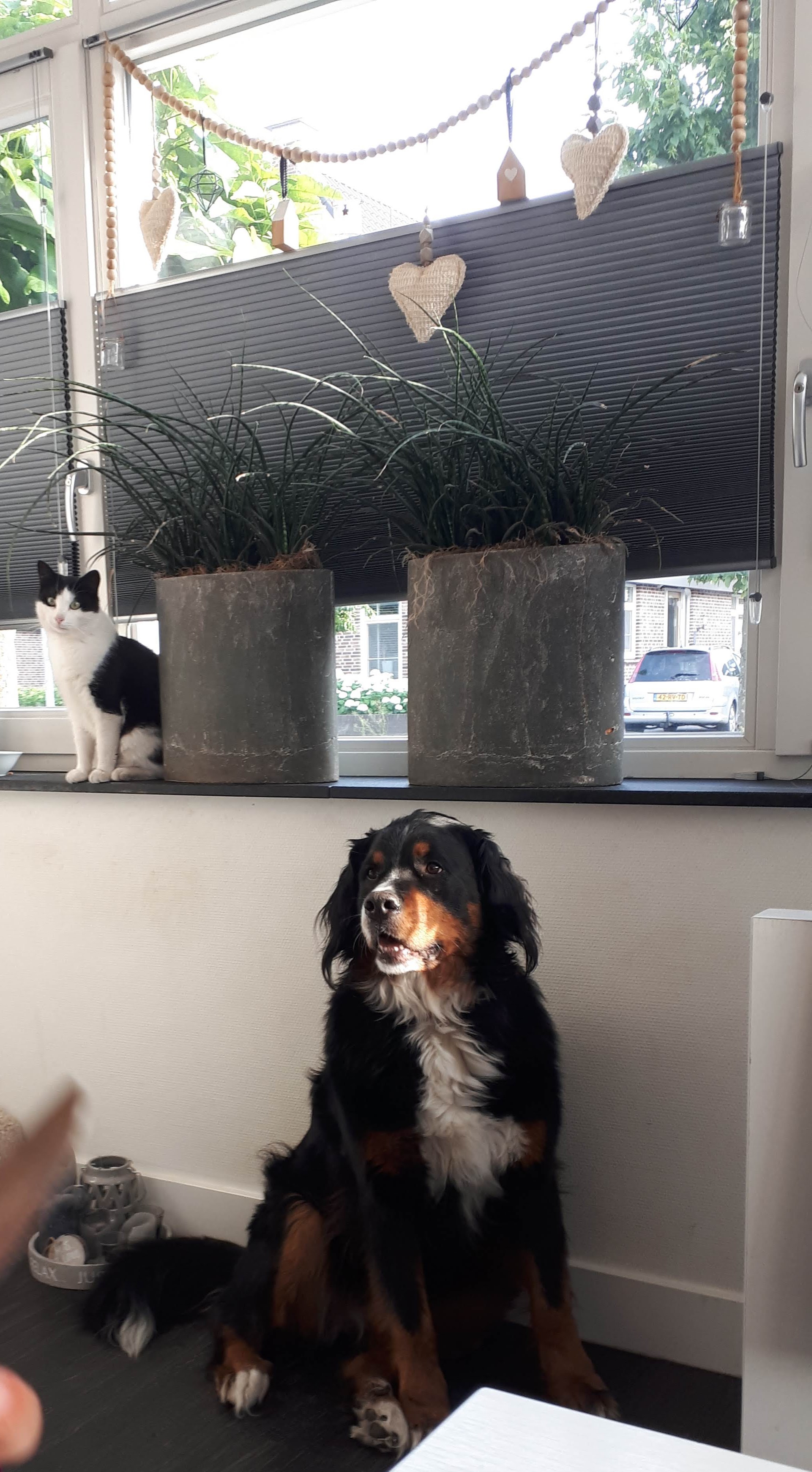 is of weg gaat. Ze is dikke maatjes met onze kat. Ze zijn ook ontzettend jaloers op elkaar.