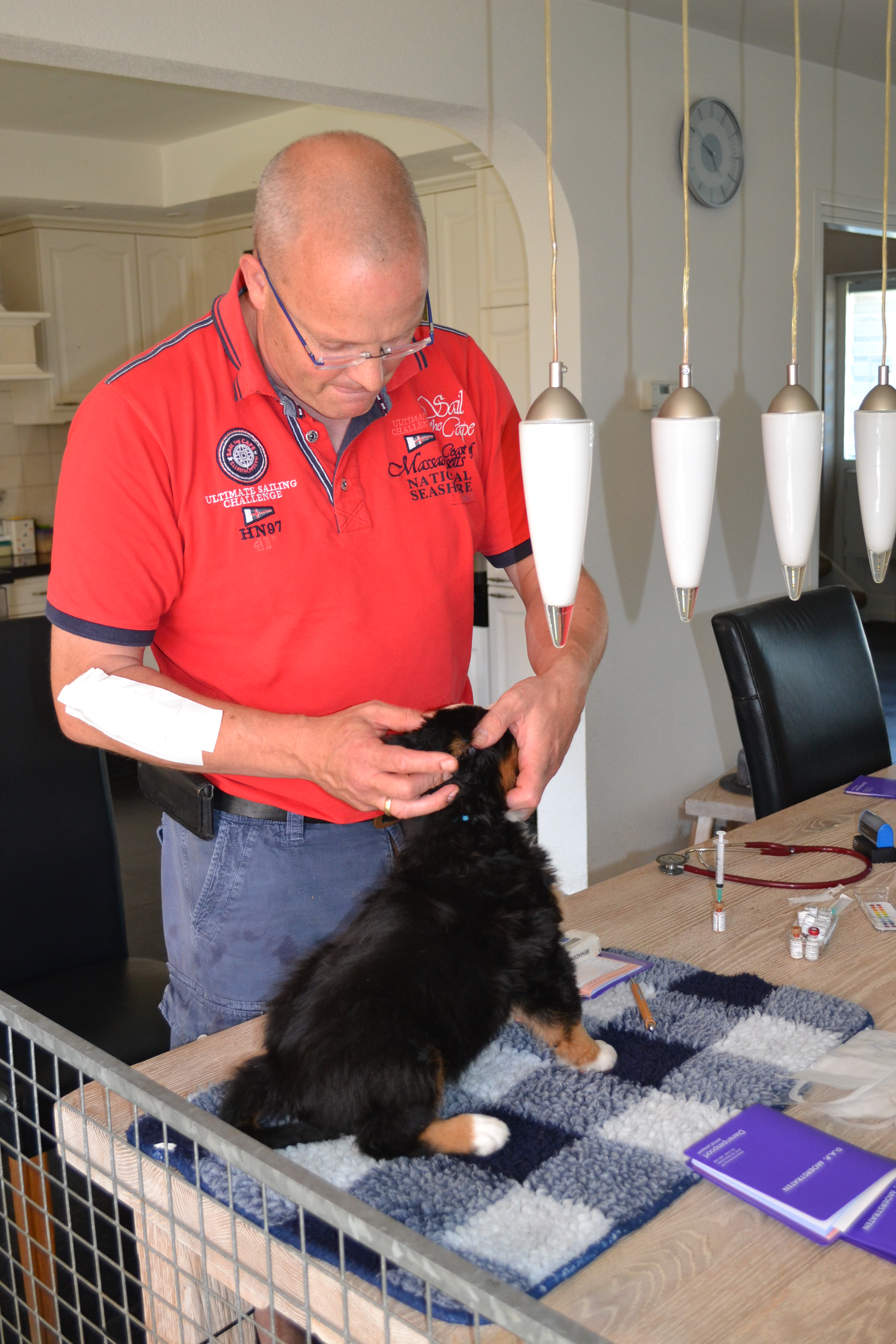 Vandaag is de Chipper van de Raad van Beheer langs geweest om de pupjes te chippen en de DNA-test af te nemen. Hij was heel tevreden over de organisatie van het nestje en daar zijn wij trots op!