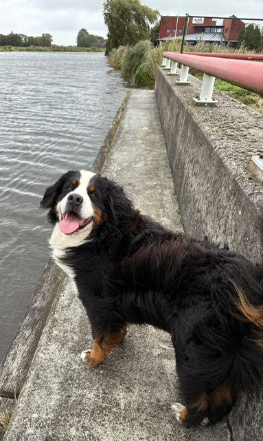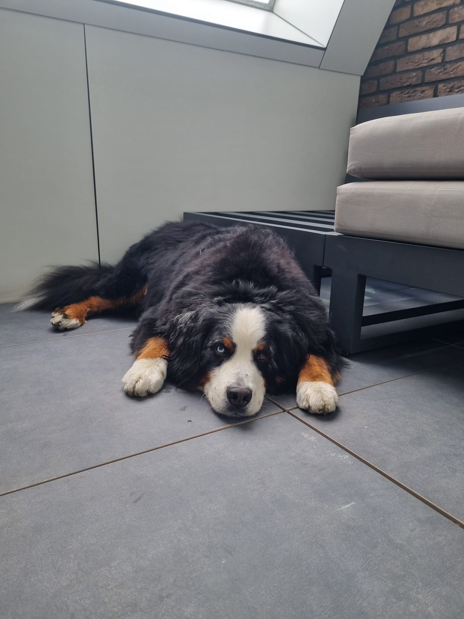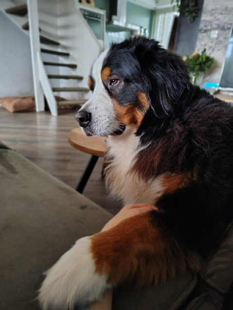 Nu de rust in huis is teruggekeerd en ze weer haar eigen plekje heeft, is Skye helemaal in haar element. Een vrolijke, trouwe, knuffelige Berner die ons gezin nog elke dag weer compleet maakt.