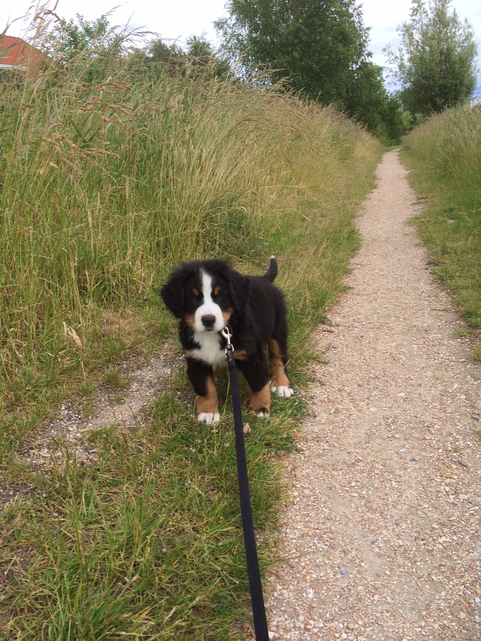 Pebbles: Pebbles is nog steeds een vrolijke, levendige hond, iedere dag lopen we de polder door samen met Puk, onze andere berner. Nu in de corona tijd lopen we toch iedere x verdere rondjes, echt lekker met dat mooie weer,